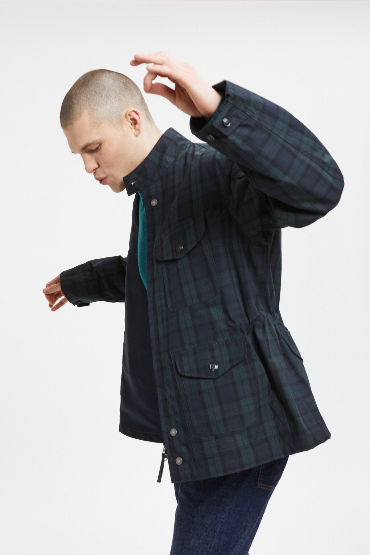 • Raus mit dem alten Jacke und rein mit der Four Climes Poly-Cotton Field Jacke! Ein Meisterwerk des legendären Daiki Suzuki. Diese in Italien gefertigte Jacke zeichnet sich durch ihre Liebe zum Detail aus. Vom Kragen mit Baracuta-Druckknopf und Knebelverschluss bis hin zu den vier aufgesetzten Taschen mit Patte und Knopfverschluss haben Sie viele Möglichkeiten, Ihr Hab und Gut unterzubringen. Und wenn Sie dachten, Sie hätten nicht genug Taschen, keine Sorge! Wir haben zwei zusätzliche Seitentaschen hinzugefügt! Mit Kordelzug zum Einstellen von Taille und Bund bestimmen Sie die Passform!