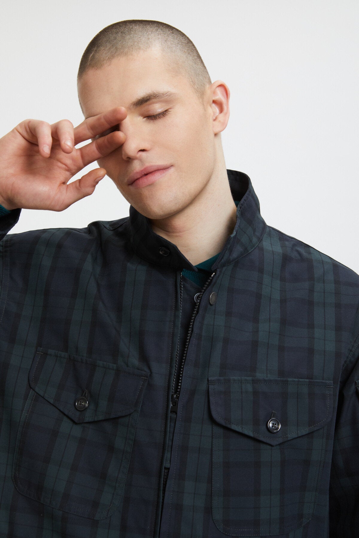 • • Kragen mit Baracuta-Druckknopf und Knebelverschluss