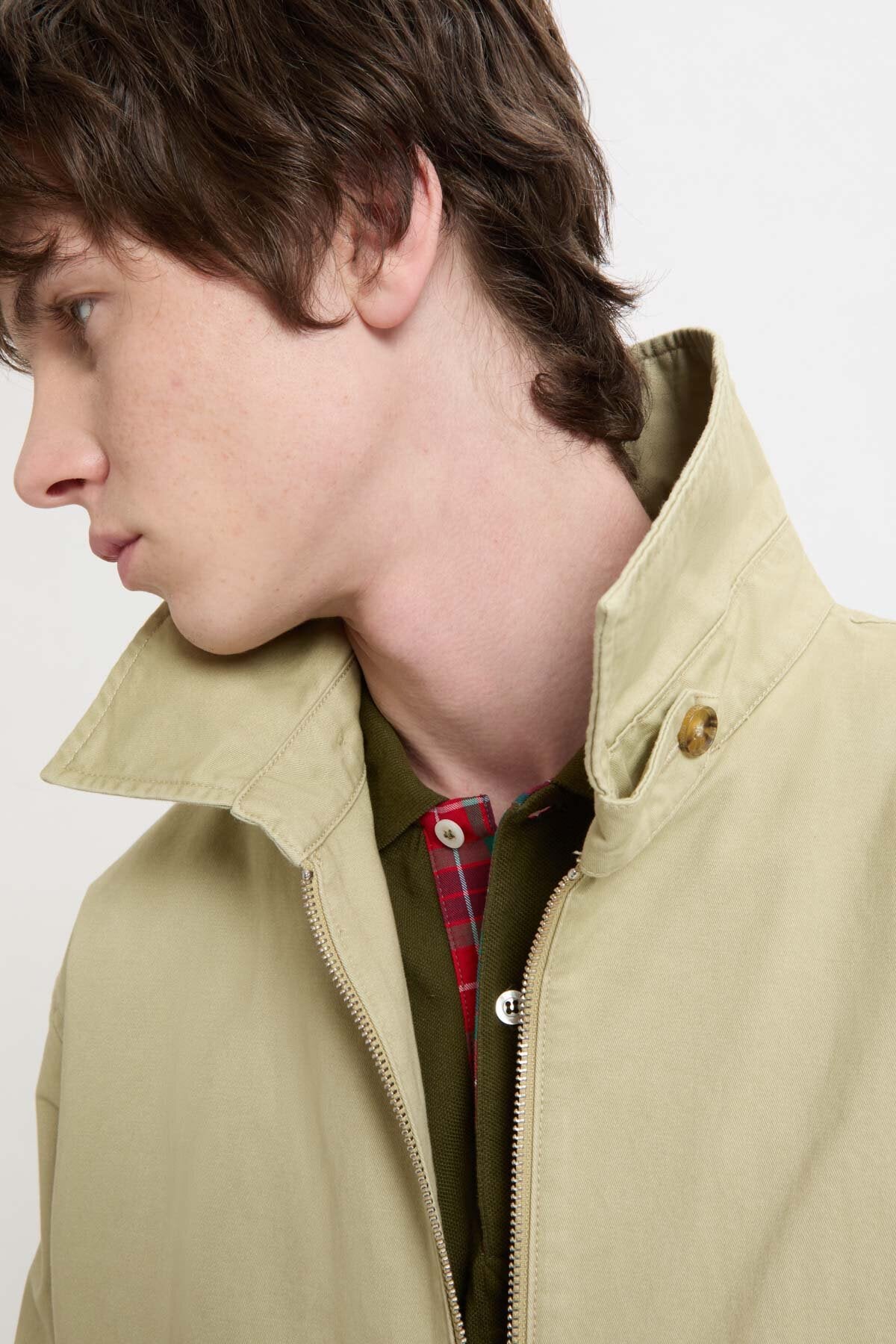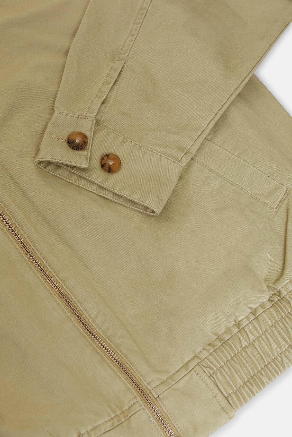 • Der G18 Twill wird aus 100% Baumwolltwill gefertigt – einem Material, das seit jeher für seine Robustheit, Widerstandsfähigkeit und feine Struktur geschätzt wird. Die charakteristische diagonale Twillstruktur verleiht dem Stoff eine natürliche Haltbarkeit und einen weichen Fall, der sich jeder Bewegung anpasst. Zugleich macht diese Webart die Baumwolle weniger anfällig für Knitter und Abrieb, sodass die Jacke ihre Form über lange Zeit bewahrt. Durch sein etwas höheres Gewicht als normale Baumwolle bietet Twill spürbare Struktur, ohne je steif zu wirken, und entwickelt mit der Zeit eine feine, edle Patina.