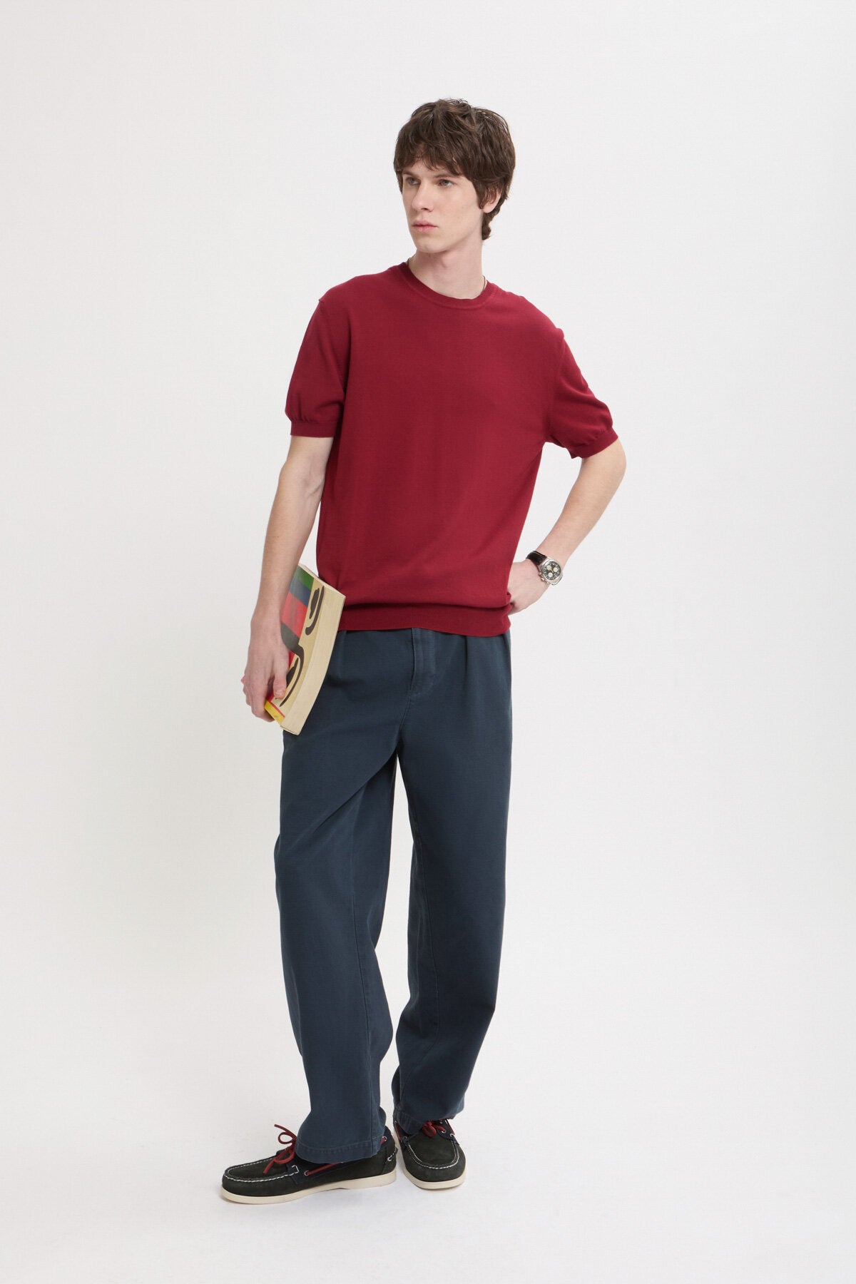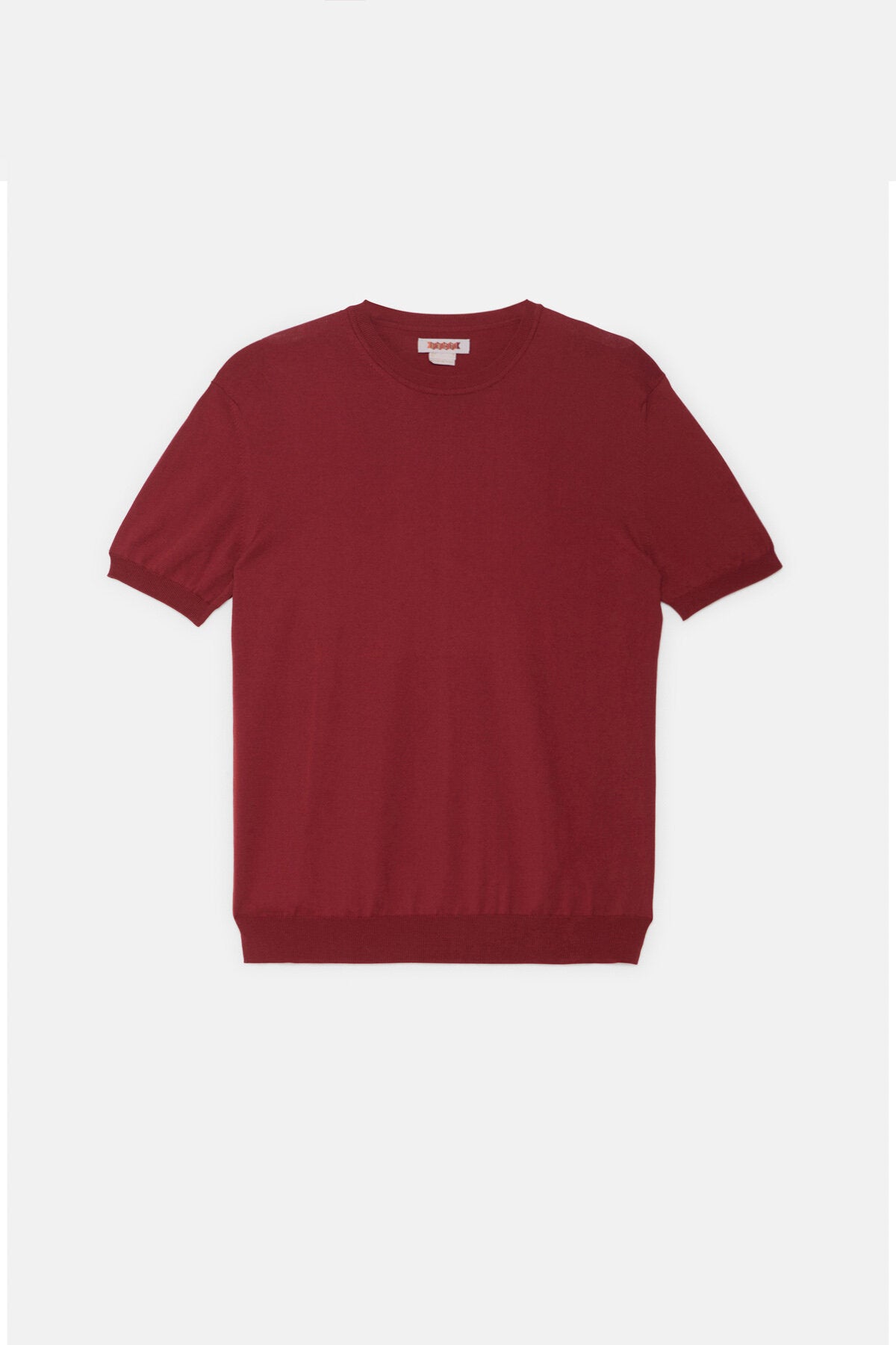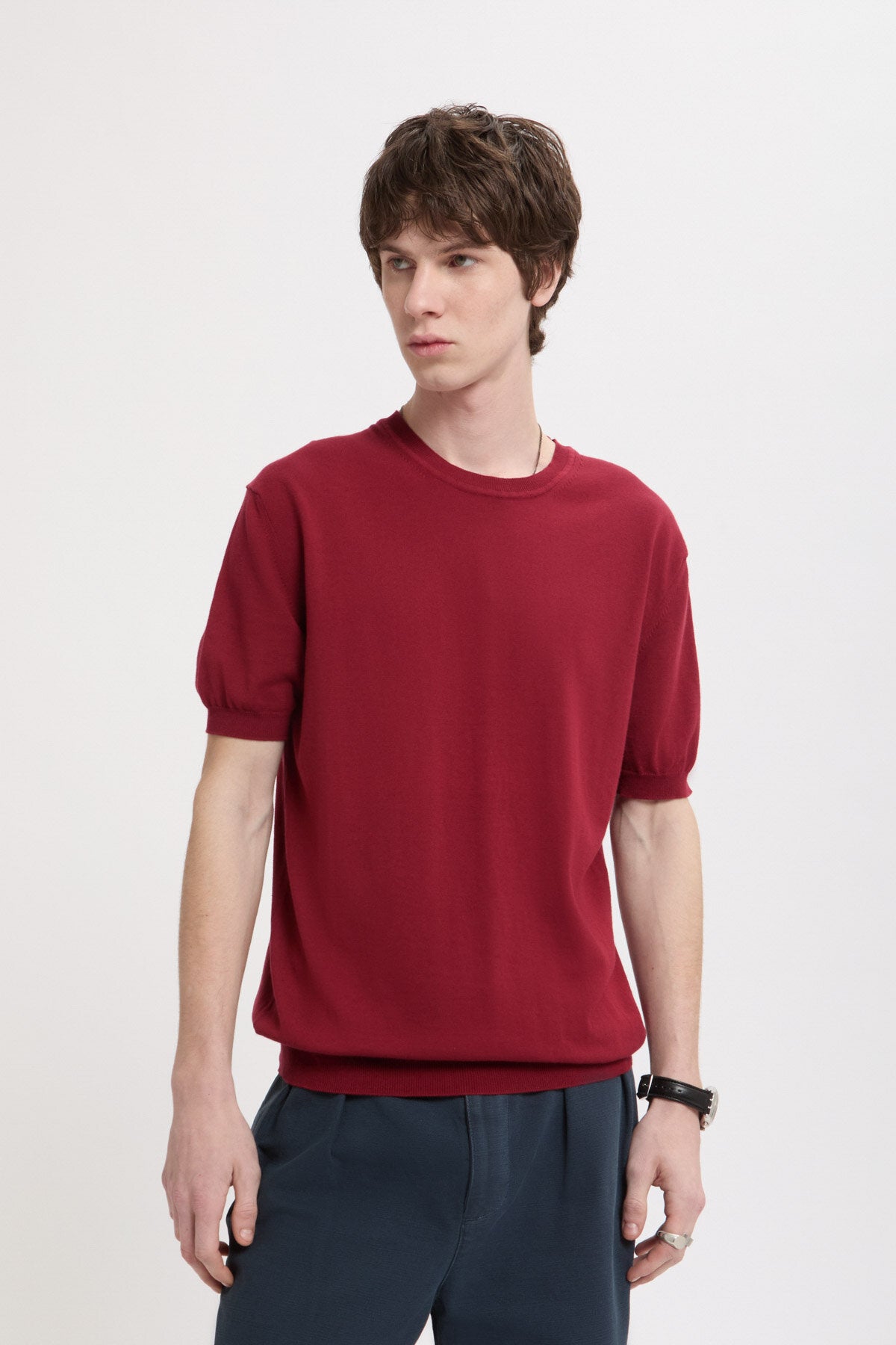 Das Strick-T-Shirt besteht aus 100 % Baumwolle und bietet ein weiches, atmungsaktives Tragegefühl und ein sauberes, strukturiertes Finish.