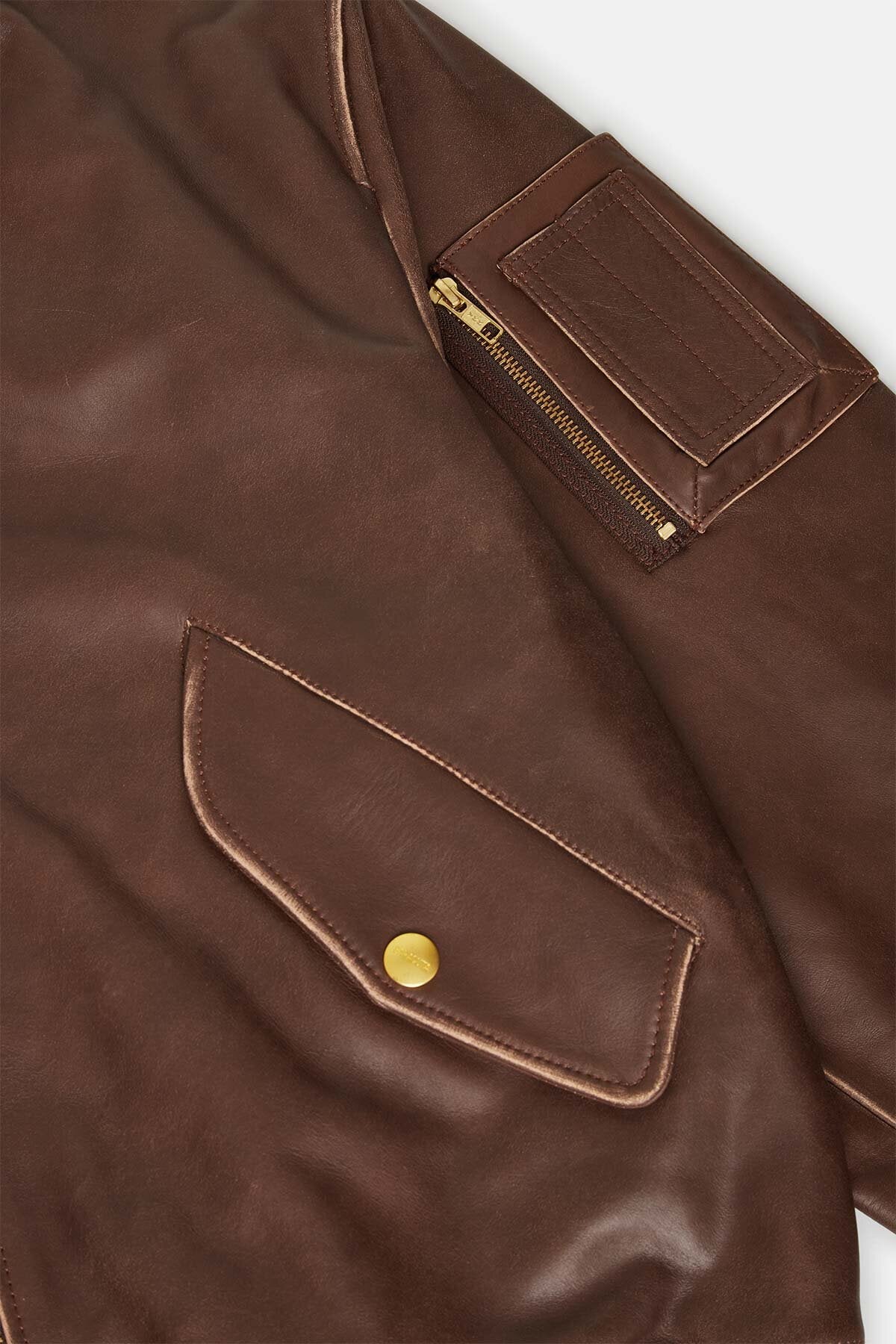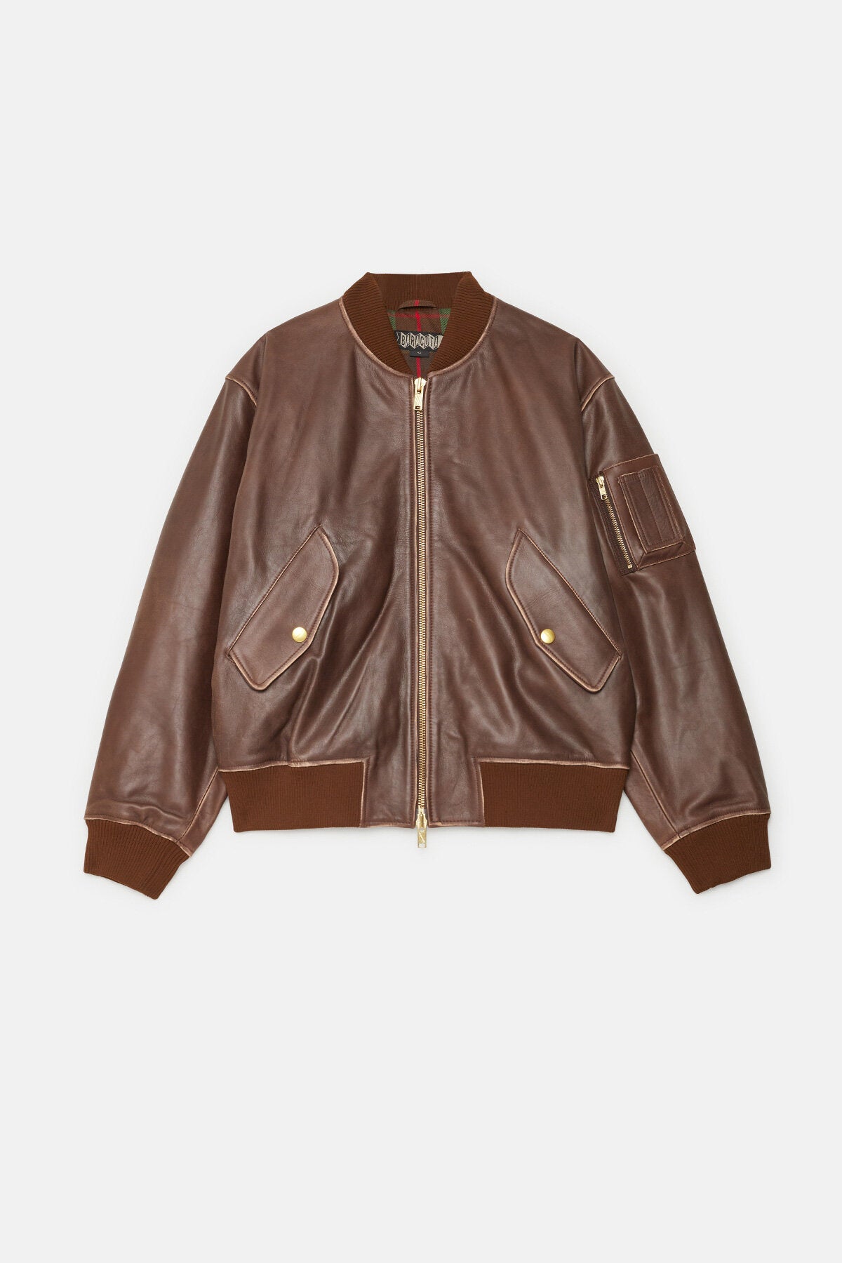• Die Leder-Fliegerjacke verbindet das klassische Erbe der Luftfahrt mit der zeitlosen Handschrift von Baracuta. Das Kleidungsstück ist aus hochwertigem Rindsleder gefertigt, hat eine auffällige Oversized-Passform und ist vollständig mit dem typischen Fraser-Tartan der Marke gefüttert, was ihr ein markantes britisches Flair verleiht. Rippstrick an Kragen, Ärmelbündchen und Bund bieten Struktur und Komfort, während der Zweiwege-Reißverschluss mit Logo und die schrägen Taschen mit Druckknopf für Funktionalität und Stil sorgen. Ein zeitloses Outerwear-Highlight – gemacht, um zu halten.
