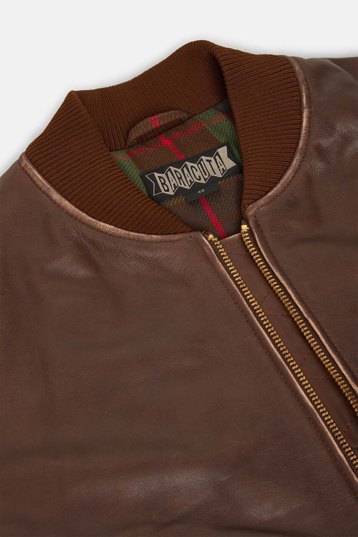 Die Leder-Fliegerjacke verbindet das klassische Erbe der Luftfahrt mit der zeitlosen Handschrift von Baracuta. Das Kleidungsstück ist aus hochwertigem Rindsleder gefertigt, hat eine auffällige Oversized-Passform und ist vollständig mit dem typischen Fraser-Tartan der Marke gefüttert, was ihr ein markantes britisches Flair verleiht. Rippstrick an Kragen, Ärmelbündchen und Bund bieten Struktur und Komfort, während der Zweiwege-Reißverschluss mit Logo und die schrägen Taschen mit Druckknopf für Funktionalität und Stil sorgen. Ein zeitloses Outerwear-Highlight – gemacht, um zu halten.