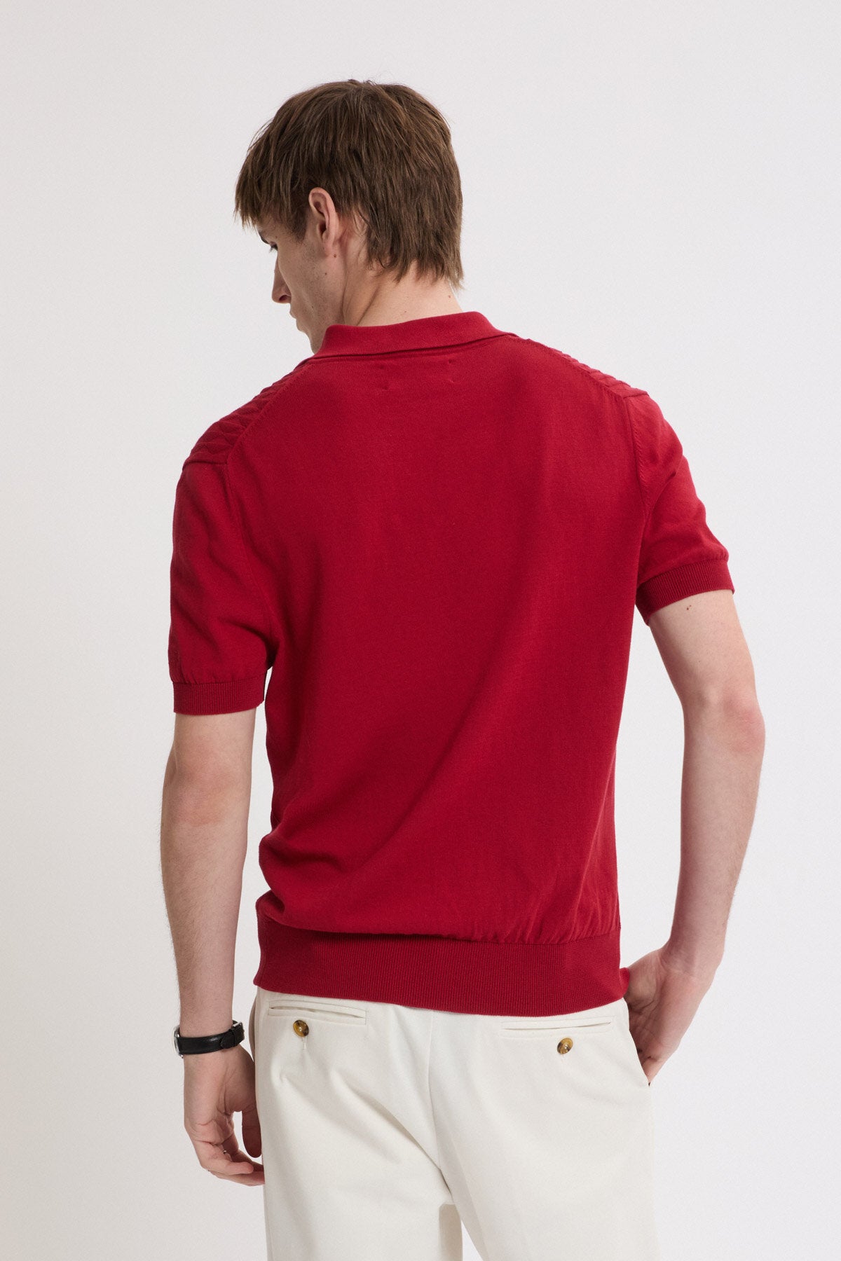 Das Pattern Stitch SS Polo besteht aus 100% Baumwolle, sorgfältig ausgewählt für ihre langlebige Qualität. Baumwolle bietet natürliche Atmungsaktivität und Strapazierfähigkeit und eignet sich ideal für den täglichen Gebrauch. Das besondere Highlight ist das diamantförmige Strickmuster auf der Vorderseite, das durch präzise Stricktechnik entsteht.