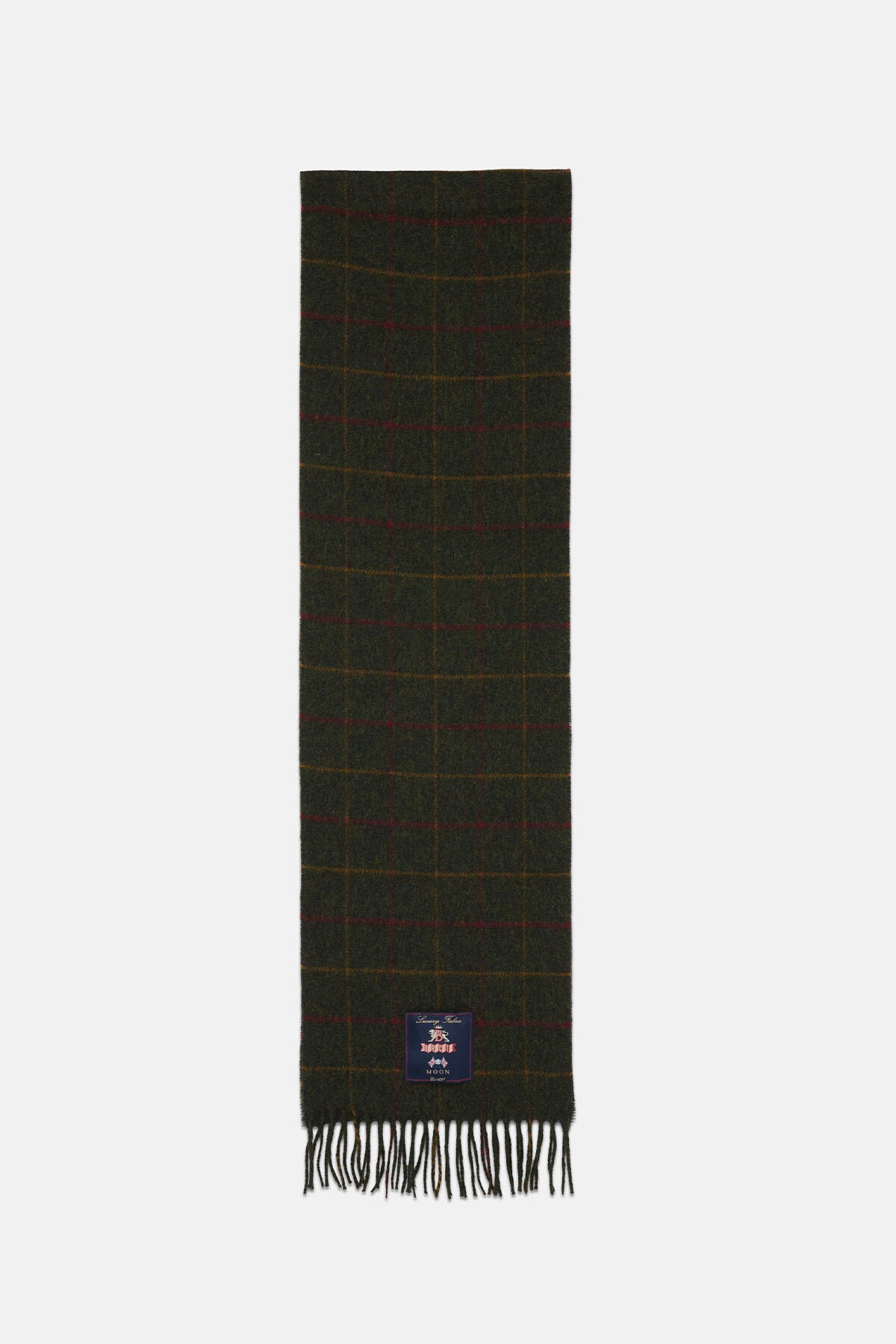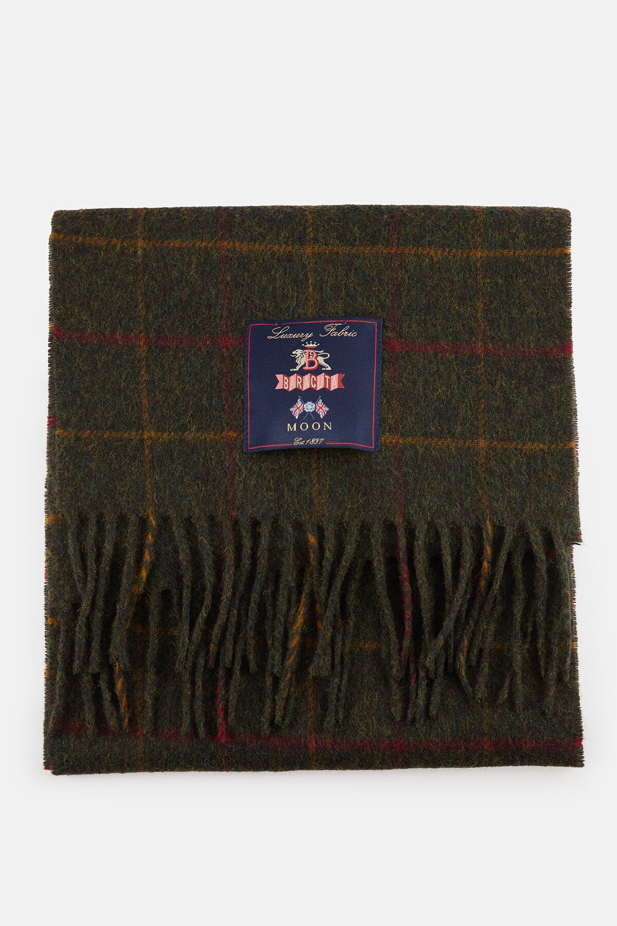 • • Baracuta x Abraham Moon & Sons Label auf Schal gestickt