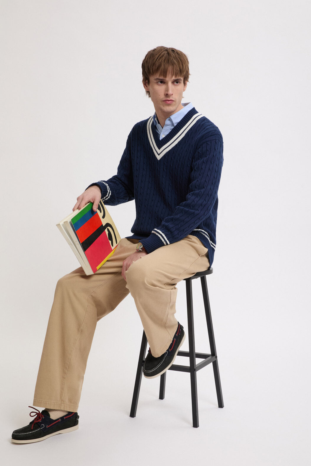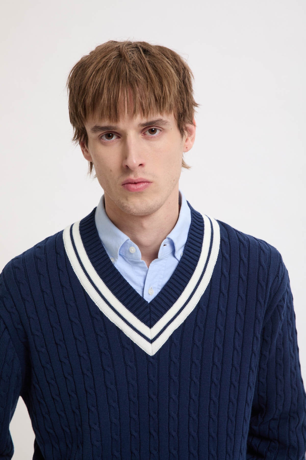 • Il Maglione Cricket con scollo a V, realizzata con una lavorazione a maglia intrecciata in 100% cotone, è morbida ma al contempo robusta e perfetta da indossare tutti i giorni.