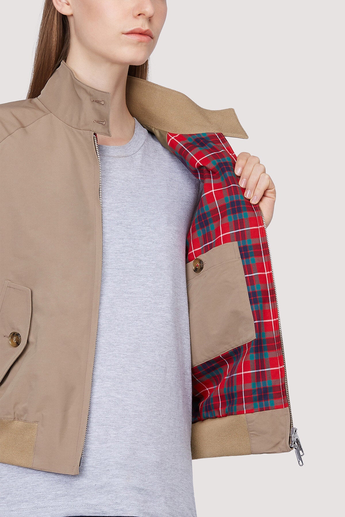• Il G9 Donna Slim di Baracuta incarna la quintessenza dello stile senza tempo proponendo una giacca inconfondibile e iconica, ideata per una donna moderna, sempre al passo con le ultime tendenze moda. Questo design, dalla vestibilità leggermente più aderente rispetto agli altri modelli, conserva le caratteristiche distintive del G9, come la fodera Fraser Tartan, lo spallone con motivo a ombrello e il collo in piedi. Che si tratti di girare in città o di avventurarsi in campagna, il G9 Donna Slim è un capo in perfetto stile streetwear, un capo immancabile nel tuo guardaroba stagione dopo stagione.