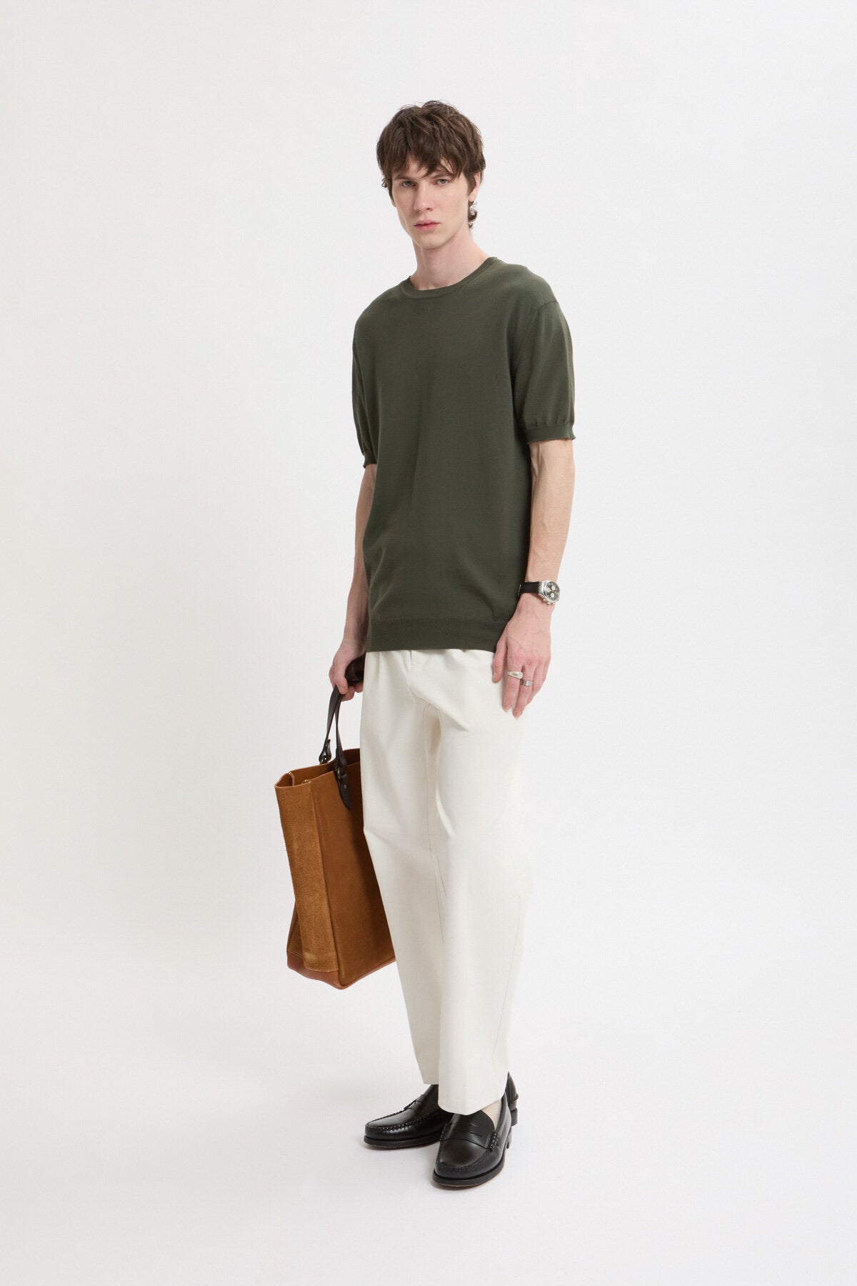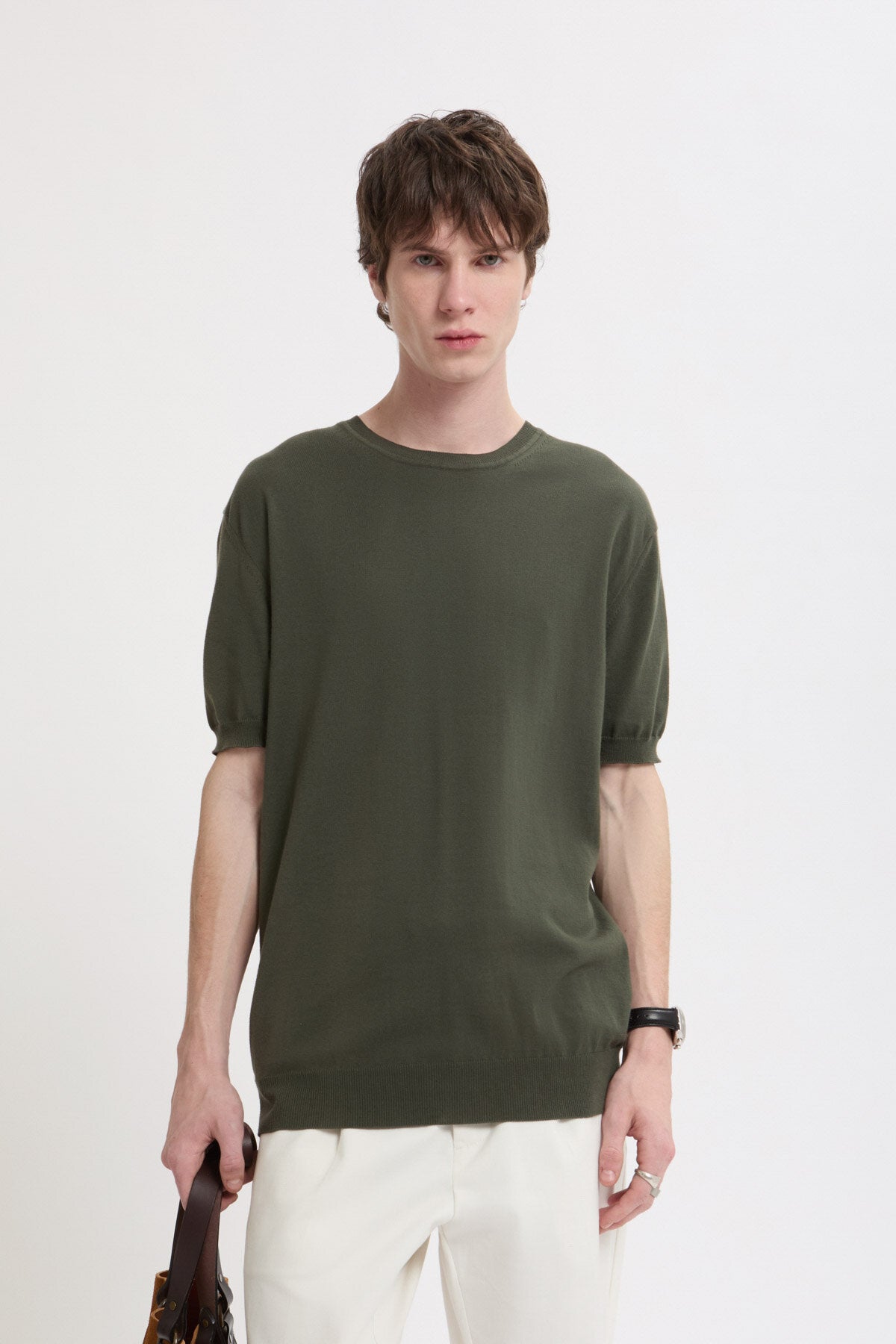 La T-shirt in maglia è realizzata in 100% cotone per offrire un’elevata morbidezza e traspirabilità e un finish pulito e strutturato.