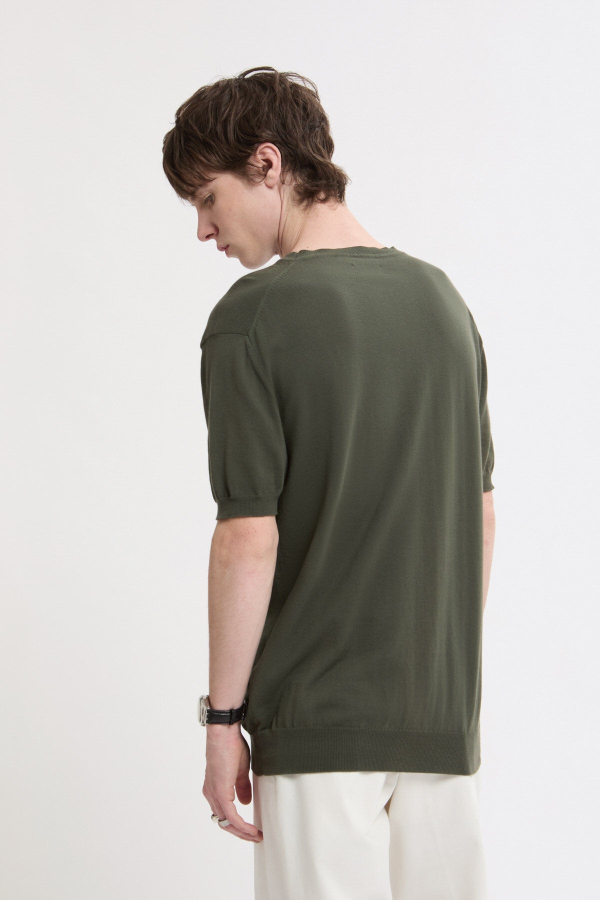 • La T-shirt in maglia è realizzata in 100% cotone per offrire un’elevata morbidezza e traspirabilità e un finish pulito e strutturato.