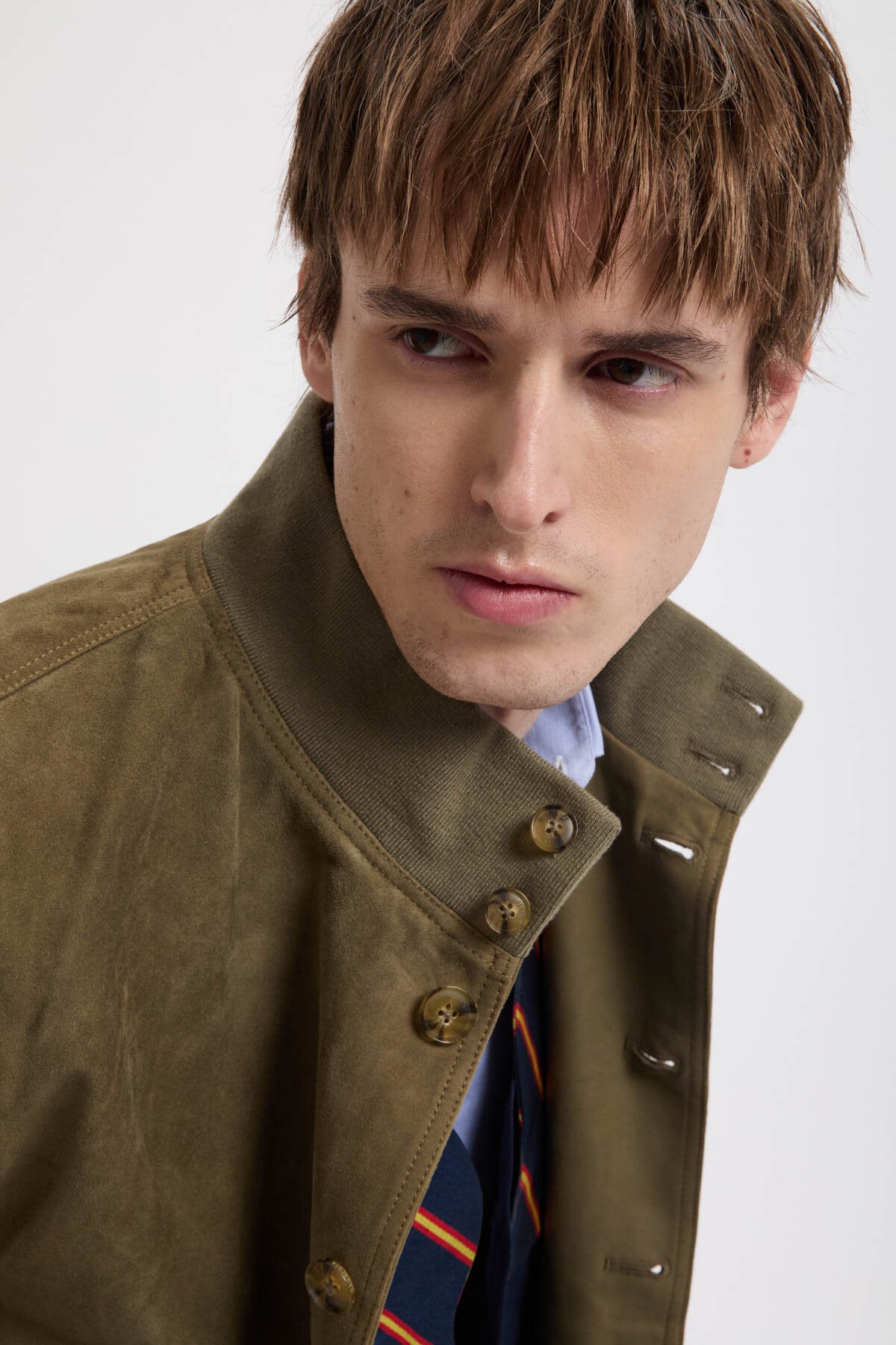 Il blouson in pelle scamosciata è una giacca progettata per durare nel tempo e accompagnarti in qualsiasi avventura. Ogni modello è realizzato in morbida pelle scamosciata pieno fiore, scelta per la sua resistenza, morbidezza e carattere naturale. Il collo in piedi a coste sottili, i polsini e l'orlo elasticizzati e le maniche a giro non si limitano a impreziosire il capo, ma sono l’emblema di decenni di esperienza nella realizzazione di giacche che seguono ogni tuo movimento mantenendo la propria forma. Interamente foderata in Fraser Tartan, la giacca riflette l'heritage di Baracuta, strizzando l’occhio alle sue radici e alla meticolosa attenzione che da sempre dedica a ogni dettaglio. È una giacca pensata per le avventure di tutti i giorni.