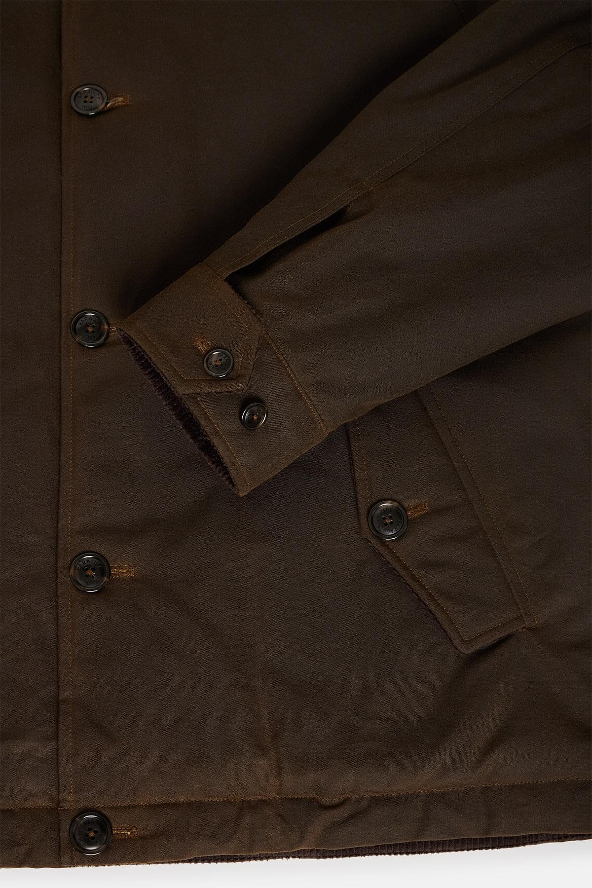 La giacca Deck cerata è l’esempio perfetto del savoir-faire Baracuta: un capospalla intramontabile, reinterpretato con impeccabile maestria artigianale. Realizzata in cotone cerato British Millerain con una finitura morbida e opaca, questa giacca protegge dalla pioggia senza rinunciare allo stile. All'interno, il modello presenta l’isolamento Thermore® (realizzato in parte con bottiglie di plastica riciclate) e una calda fodera in stile peluche, un morbido abbraccio per affrontare al meglio le giornate più fredde.