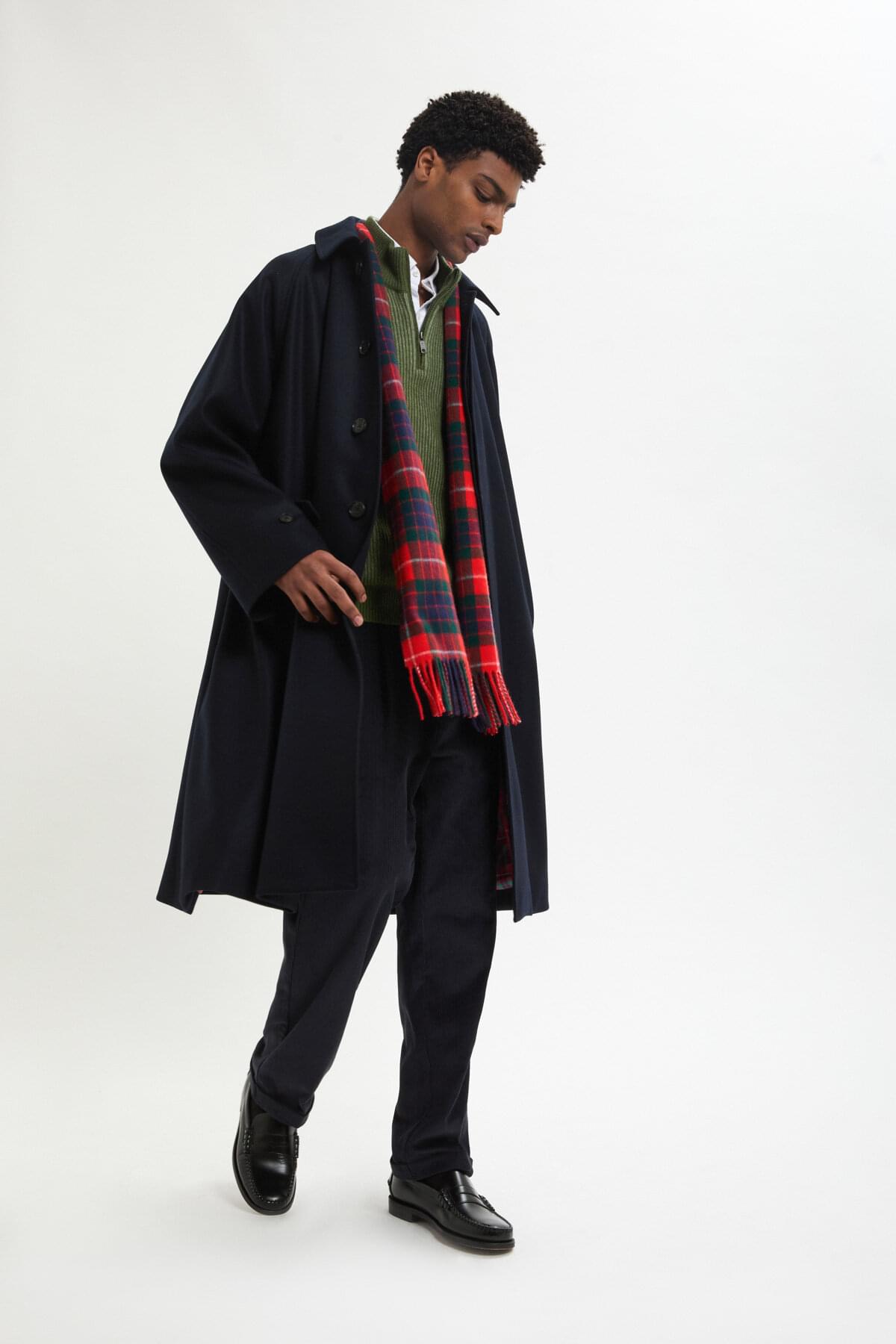 It is long, it is flowing and it is made from 100% wool, so it moves with you in that relaxed, dependable way you want on cold mornings and windy walks to wherever you are going. When the weather cannot make up its mind, it just gets on with the job. And inside, you get a flash of Fraser Tartan for a little nod of character underneath all that calm, collected exterior. There’s a neat little clasp button flap inside at the collar, ready for when you fancy slipping a bit of padding in for extra warmth.