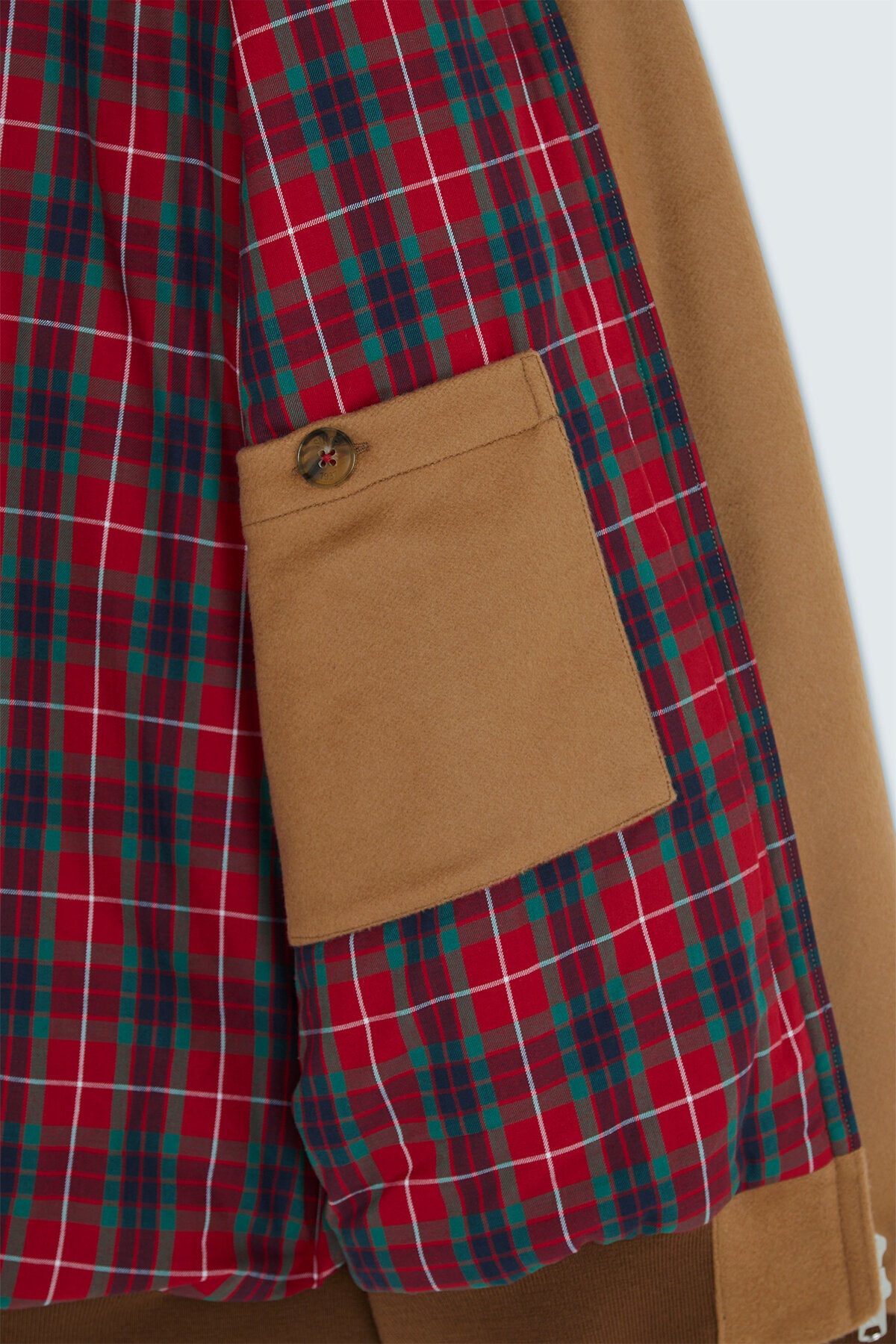 • • Internal pocket in external cloth with personalised Baracuta button closure