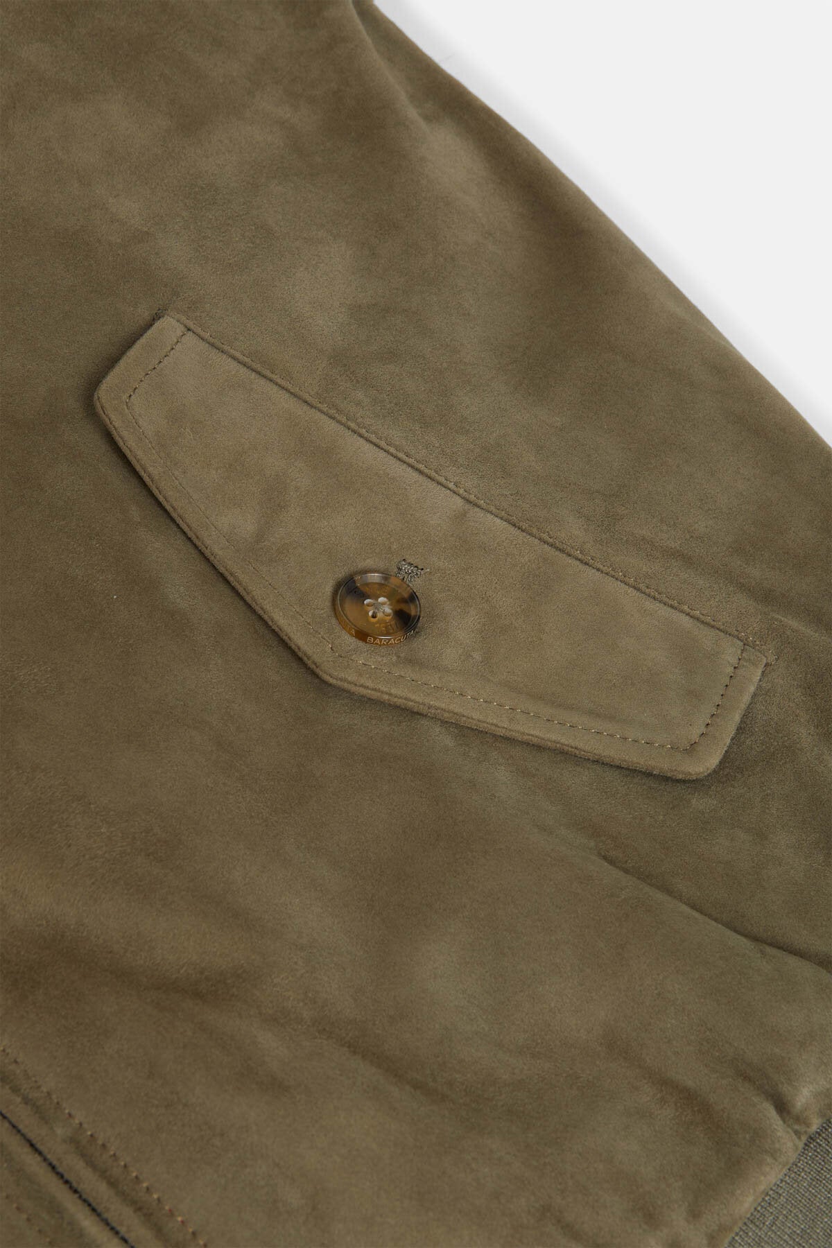 • You can never go wrong with a Suede Jacket. The G9 Suede is the classic Harrington Jacket in fine suede. This garment has made a name for itself and become extremely popular over the years due to its versatility, making it a real style icon. It features our breathable Fraser Tartan lining made from Coolmax® fabric, two-button dog ear collar, slanted side pockets, our signature umbrella back yoke, and ribbed cuffs, waistband and inner collar.