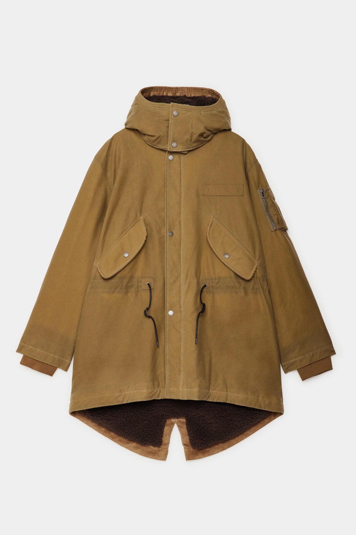 Storage includes two deep front pockets with flap closures, a zippered mini shoulder pocket for your essentials, plus an internal corduroy pocket for valuables. A subtle slit vent at the hem ensures easy movement, so whether you’re hitting rugged trails or navigating city streets, you stay warm, dry, and effortlessly sharp.