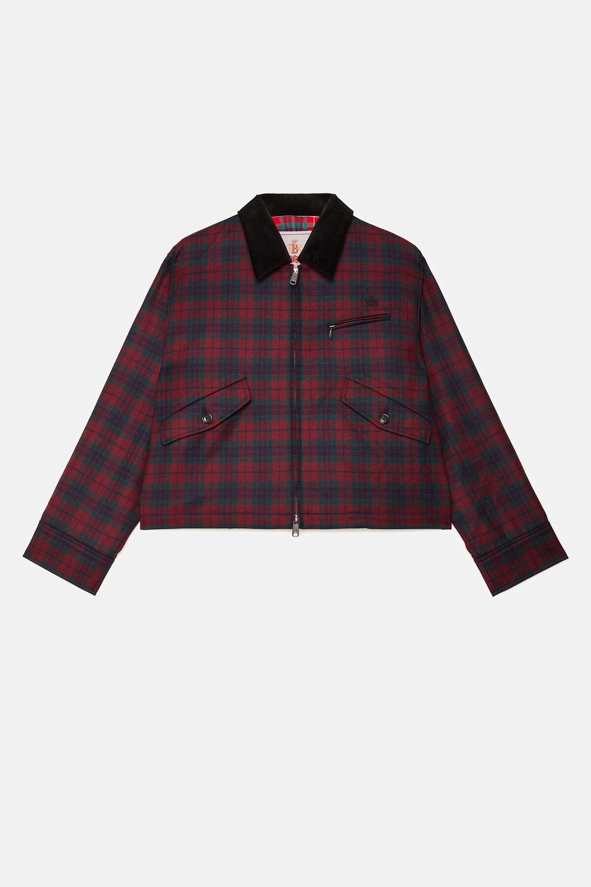 • The Baracuta Work Jacket updates classic British workwear with a modern edge made for her. Spot a Baracuta from a mile off? Easy. The umbrella back storm flap, slanted front pockets, and subtle embroidered logo keep it unmistakably classic, with a fresh twist. Cut in deep burgundy and green tartan, it’s finished with a corduroy collar for comfort and a signature adjustable waistband with a strap and metal buckle. A solid everyday jacket with just the right amount of attitude. Pair it with the matching quilted skirt in the same fabric for the full look.
